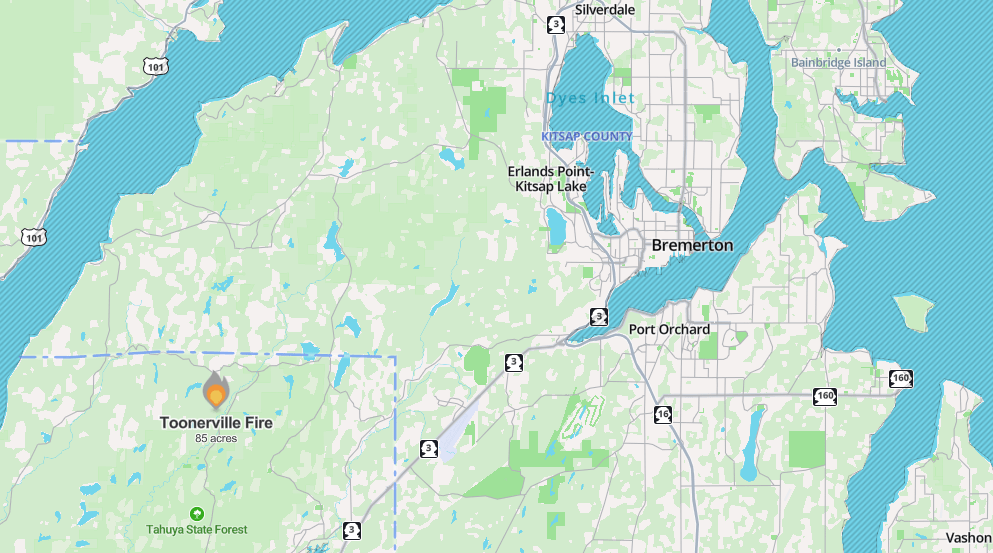 There is also a smaller fire, the Toonerville Fire burning west of Bremerton. It’s about 85 acres in size.