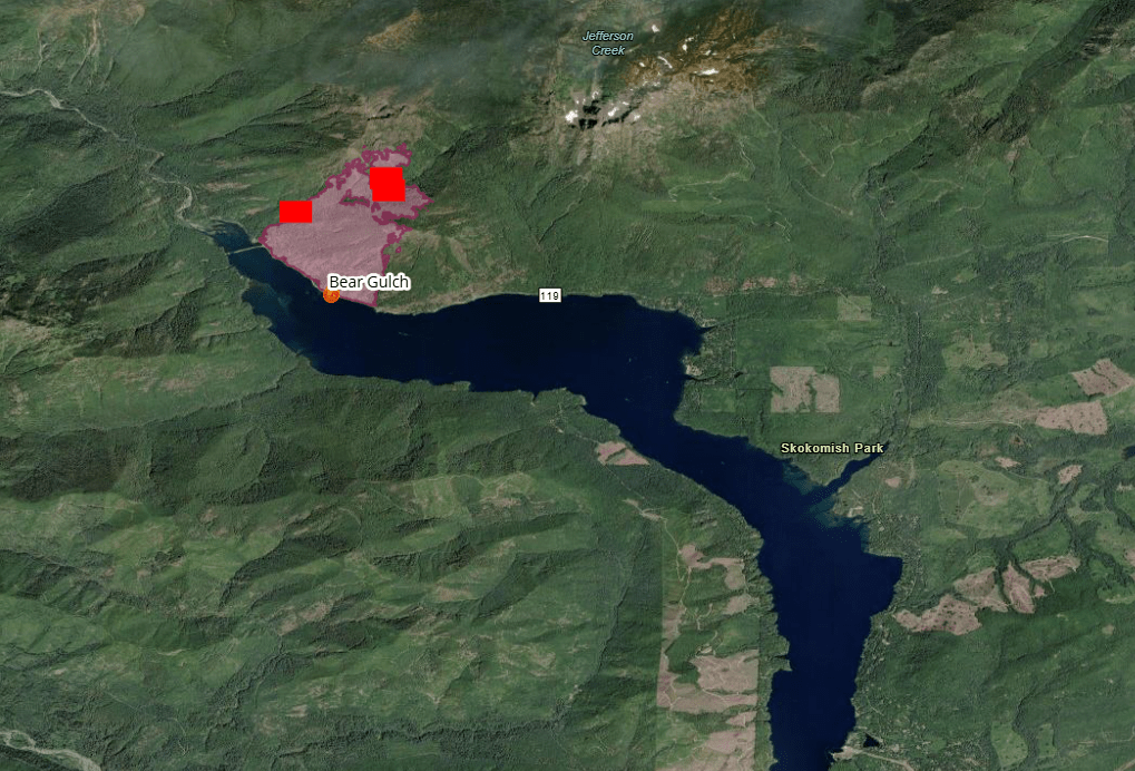 There are two forest fires burning in the area. The Bear Gulch fire near Hoodsport, north of Lake Cushman has been burning since July 6 and is about 650 acres in size.
